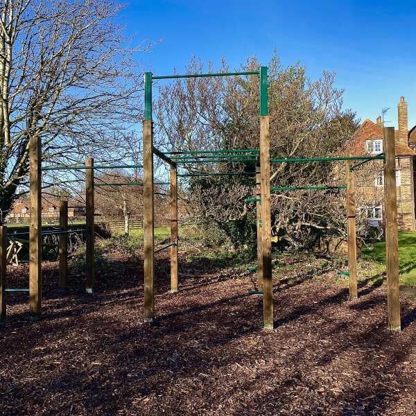 The Pull Up Bars were installed at a standard height of 2.4 metres with two lower bars added to under the Jungle Bars for Incline Press Ups, this is also great for strengthening the entire structure further.